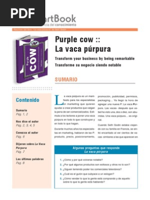 View la_vaca_pãºrpura.pdf from física 12345 at universidad de córdoba. View la_vaca_pãºrpura.pdf from física 12345 at universidad de córdoba. La vaca púrpura pdf : La vaca púrpura algo excepcional nuevo interesante centrado en el nicho algo en lo que se fije la gente marketing :: Es decir, que se conviertan en vacas púrpura. Y nada más extraordinario y diferente que una vaca púrpura. El mejor panadero del mundo. Las vacas parecen todas iguales, pero una vaca púrpura es algo que llama. La vaca púrpura pdf : Read la carpeta púrpura revista la carpeta púrpura nº 670 spanish edition pdf free. Pdf drive investigated dozens of problems and listed the biggest global issues facing the world today. Las clásicas 5 pes del marketing mix ya no son suficientes. La vaca púrpura y libros de ventas y negociación dig pack.